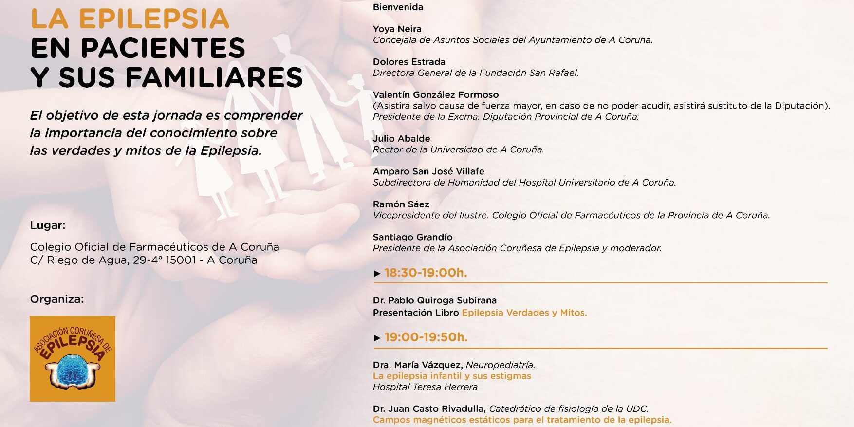El próximo día 28 de abril de 2023 tendrá lugar una jornada por la visibilización de la epilepsia en el Colegio Oficial de Farmacéuticos de A Coruña (C/Riego de Agua, 29-4º, 15001, A Coruña).